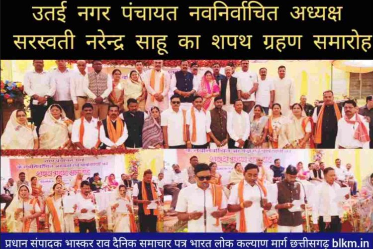 दुर्ग सांसद विजय बघेल के मुख्य अतिथ्य और ग्रामीण विधायक ललित चंद्रकर की अध्यक्षता में उतई नगर पंचायत नवनिर्वाचित अध्यक्ष सरस्वती नरेन्द्र साहू का शपथ ग्रहण समारोह