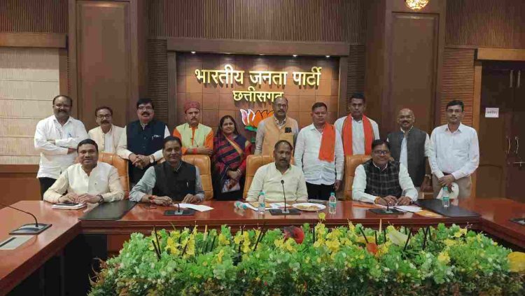 *प्रदेश भाजपा परिसीमन समिति की बैठक में प्रदेश महामंत्री (संगठन) पवन साय,भरत वर्मा, रजनीश सिंह ,रामजी भारती, दीपक म्हस्के द्वारा परिसीमन के प्रस्ताव स्वीकृति करते हुए दुर्ग और भिलाई जिला संगठन को मजबूत करने परिवर्तन किया गया*