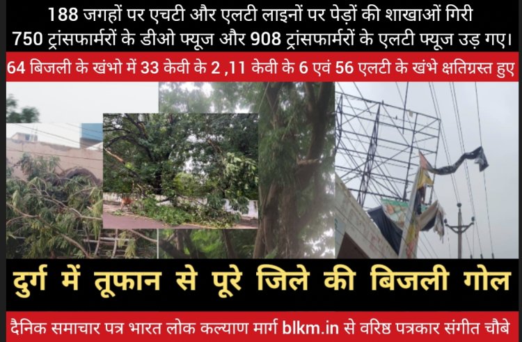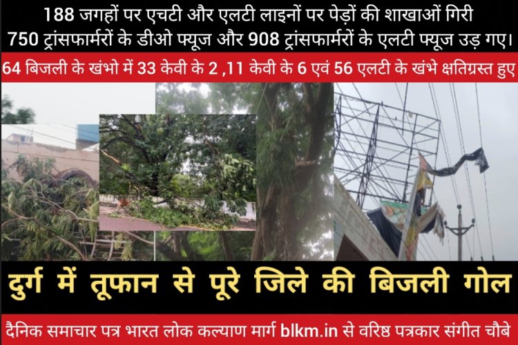 Durg: तूफान से पूरे जिले में बिजली आपूर्ति ठप्प हो गयी जिसे अधिकारीओं और कर्मचारीओं ने चंद घंटों में बहाल कर दिया था