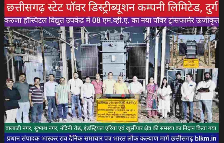 दुर्ग रीजन में 08 एमवीए क्षमता का दूसरा पॉवर ट्रांसफार्मर करुणा हॉस्पिटल उपकेंद्र में स्थापित
